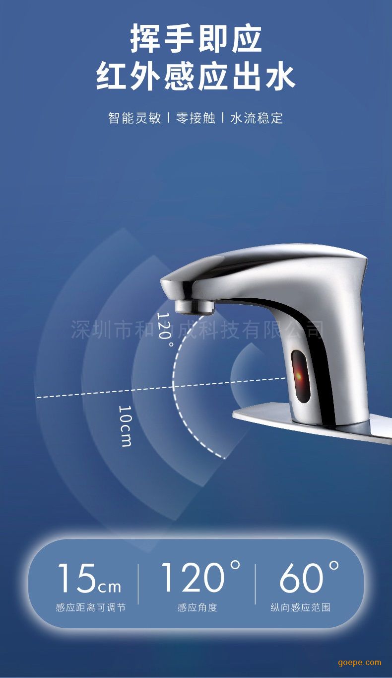 - 和力成HLC和力成台盆智能感应水龙头大壳体黄铜电镀H-D001